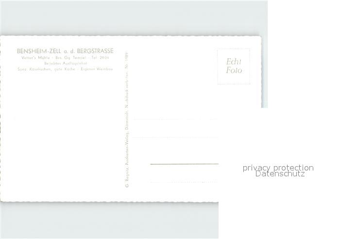 72217242 Zell Bensheim Vetters Muehle postalisch nicht gelaufen Erhaltung siehe scans KatCode: 11110006431002