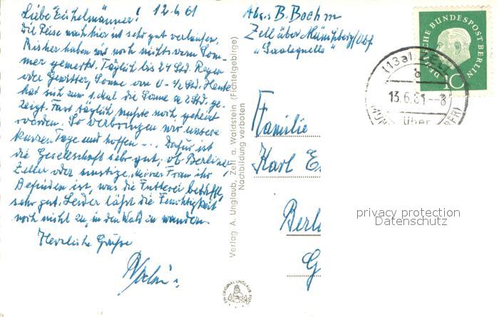 73734932 alte Postkarte Zell Fichtelgebirge Bahnhofsanlage Strassenpartien Kapelle Siebenstammbuche Stadtwald Brunnen Ortsansicht postalisch gelaufen Erhaltung siehe scans [FriedD77] KatCode: 11110009475189