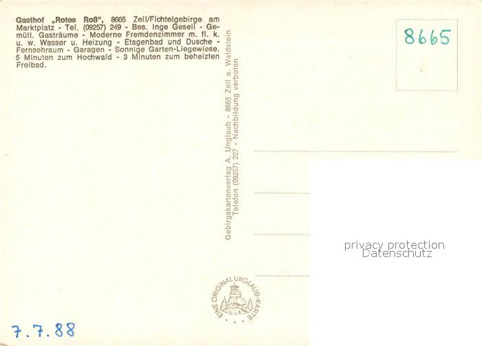 73651645 Zell Fichtelgebirge Gasthof Rotes Ross Restaurant Treppenaufgang Garten Maibaum postalisch nicht gelaufen Erhaltung siehe scans [FriedD77] KatCode: 11110009475189