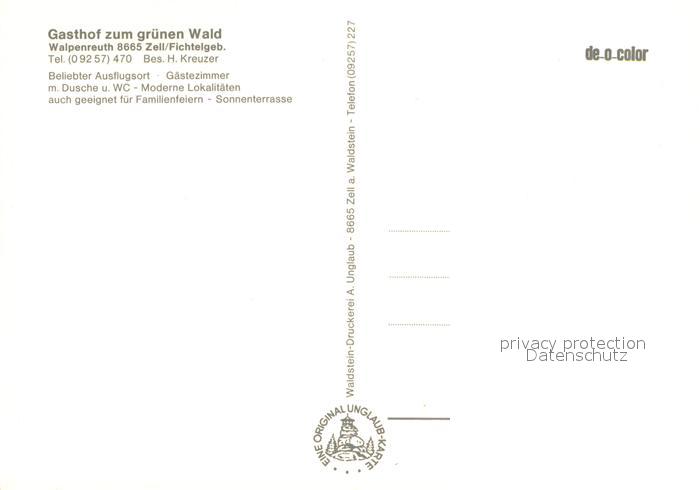 73715997 Zell Fichtelgebirge Panorama Gasthof zum gruenen Wald Walpenreuth Haus Kreuzer Gaestezimmer Gastraeume postalisch nicht gelaufen Erhaltung siehe scans [WerneD78] KatCode: 11110009475189