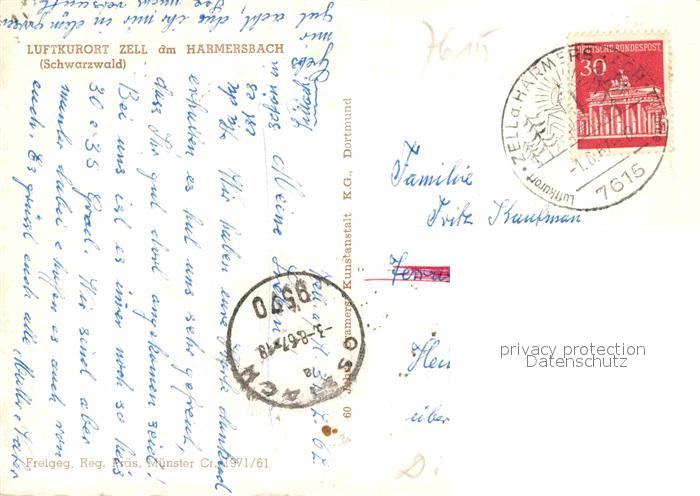 72878473 alte Postkarte Zell Harmersbach Fliegeraufnahme postalisch gelaufen Erhaltung siehe scans [AndreD76] KatCode: 11110008317146