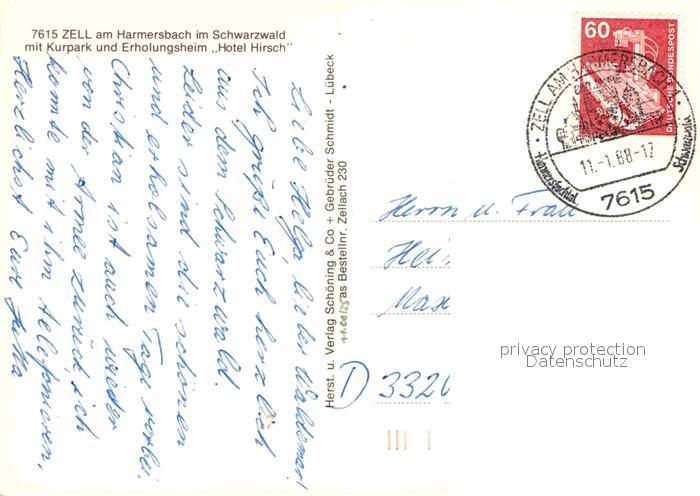 72912212 alte Postkarte Zell Harmersbach Fliegeraufnahme Park Erholungsheim Hotel Hirsch postalisch gelaufen Erhaltung siehe scans [LiesaD40] KatCode: 11110008317146