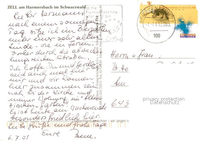 73223317 alte Postkarte Zell Harmersbach Fuerstenberger Hof Rathaus Storchenturm Chronik postalisch gelaufen Erhaltung siehe scans [KathaD81] KatCode: 11110008317146