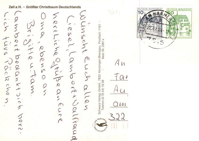 73937435 alte Postkarte Zell Harmersbach Groesster Christbaum Deutschlands postalisch gelaufen Erhaltung siehe scans [WerneD78] KatCode: 11110008317146