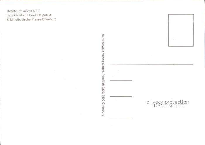 71830800 Zell Harmersbach Hirschturm Zeichnung Boris Onipenko postalisch nicht gelaufen Erhaltung siehe scans KatCode: 11110008317146