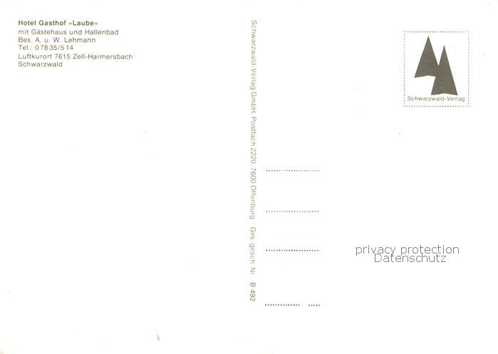 73845648 Zell Harmersbach Hotel Gasthof Laube postalisch nicht gelaufen Erhaltung siehe scans [FriedD77] KatCode: 11110008317146