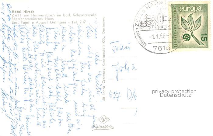 73154920 alte Postkarte Zell Harmersbach Hotel Hirsch Gaststube postalisch gelaufen Erhaltung siehe scans [WerneD78] KatCode: 11110008317146