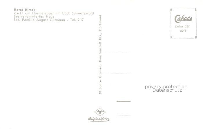 73280376 Zell Harmersbach Hotel Hirsch Restaurant postalisch nicht gelaufen Erhaltung siehe scans [LiesaD40] KatCode: 11110008317146