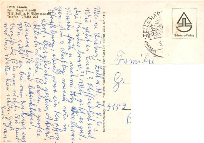 73884773 alte Postkarte Zell Harmersbach Hotel Loewen Gastraeume postalisch gelaufen Erhaltung siehe scans [FriedD77] KatCode: 11110008317146