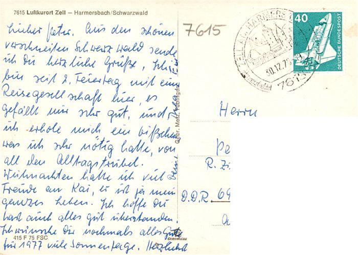 73931302 alte Postkarte Zell Harmersbach Kirche Panorama Storchenturm Eingang Ortspartie postalisch gelaufen Erhaltung siehe scans [FriedD77] KatCode: 11110008317146