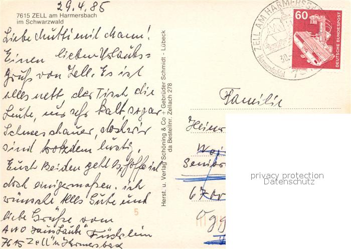 72995593 alte Postkarte Zell Harmersbach Kirche Stadttor Altstadt postalisch gelaufen Erhaltung siehe scans [AndreD76] KatCode: 11110008317146