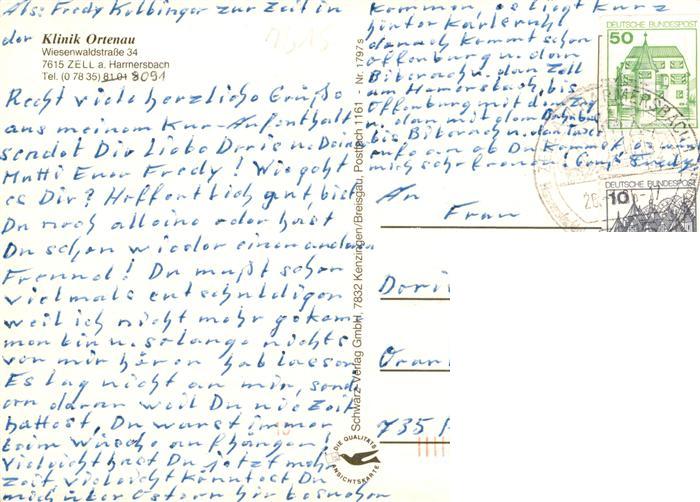 73931322 alte Postkarte Zell Harmersbach Klinik Ortenau postalisch gelaufen Erhaltung siehe scans [FriedD77] KatCode: 11110008317146