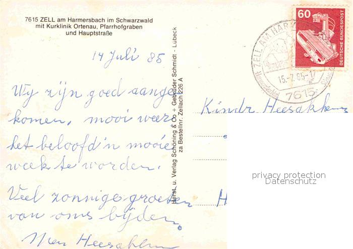 72865143 alte Postkarte Zell Harmersbach Kurklinik Ortenau Pfarrhofgraben Hauptstrasse postalisch gelaufen Erhaltung siehe scans [LiesaD40] KatCode: 11110008317146
