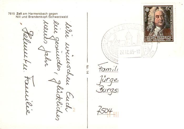 73930763 alte Postkarte Zell Harmersbach mit Nill und Brandenkopf postalisch gelaufen Erhaltung siehe scans [FriedD77] KatCode: 11110008317146