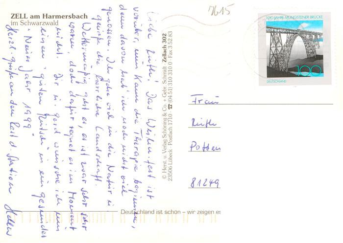 73930803 alte Postkarte Zell Harmersbach Ortspartien postalisch gelaufen Erhaltung siehe scans [FriedD77] KatCode: 11110008317146