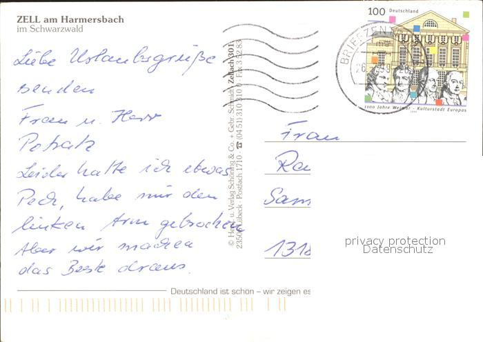 71935084 alte Postkarte Zell Harmersbach Panorama Ortsblick Strassenpartien Stadtturm postalisch gelaufen Erhaltung siehe scans KatCode: 11110008317146