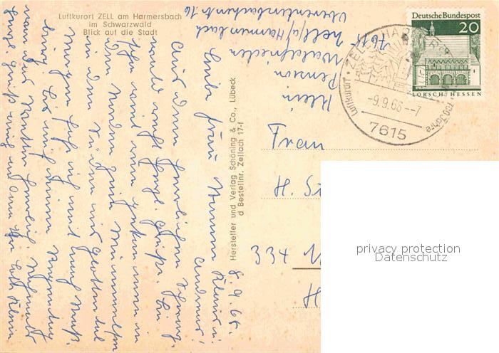 72900988 alte Postkarte Zell Harmersbach Stadtblick postalisch gelaufen Erhaltung siehe scans [WerneD78] KatCode: 11110008317146