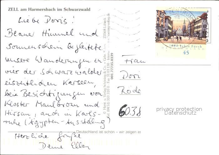 72449267 alte Postkarte Zell Harmersbach Stadttor Dorfmotive Panorama Kirche Fachwerkhaus postalisch gelaufen Erhaltung siehe scans KatCode: 11110008317146