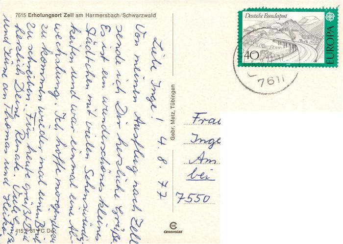 73930764 alte Postkarte Zell Harmersbach Stadttor Panoram Schlossturm Wallfahrtskirche Ortspartie postalisch gelaufen Erhaltung siehe scans [FriedD77] KatCode: 11110008317146