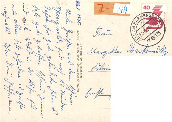 73937094 alte Postkarte Zell Harmersbach Storchenturm Hauptstrasse Pfarrkiche Wallfahrtskirche Buergerwehr Panorama Kurpark postalisch gelaufen Erhaltung siehe scans [WerneD78] KatCode: 11110008317146