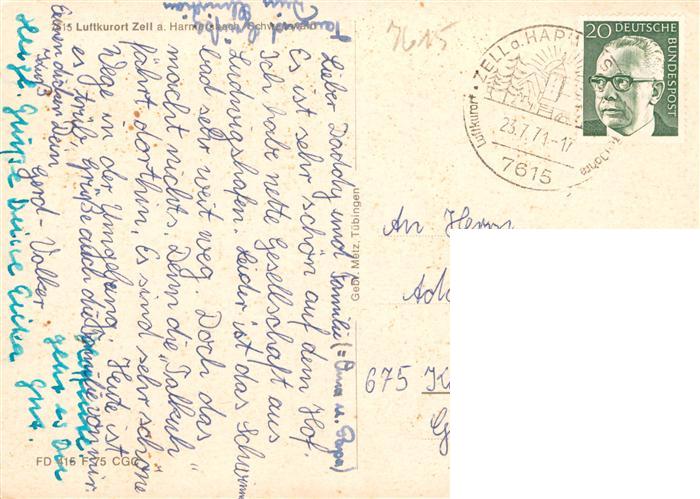 73931307 alte Postkarte Zell Harmersbach Wallfahrtskirche Eingang Panorama Luftkurort Schild Storchenturm Ortspartie postalisch gelaufen Erhaltung siehe scans [FriedD77] KatCode: 11110008317146