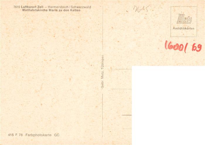73936751 Zell Harmersbach Wallfahrtskirche Maria zu den Ketten postalisch nicht gelaufen Erhaltung siehe scans [WerneD78] KatCode: 11110008317146