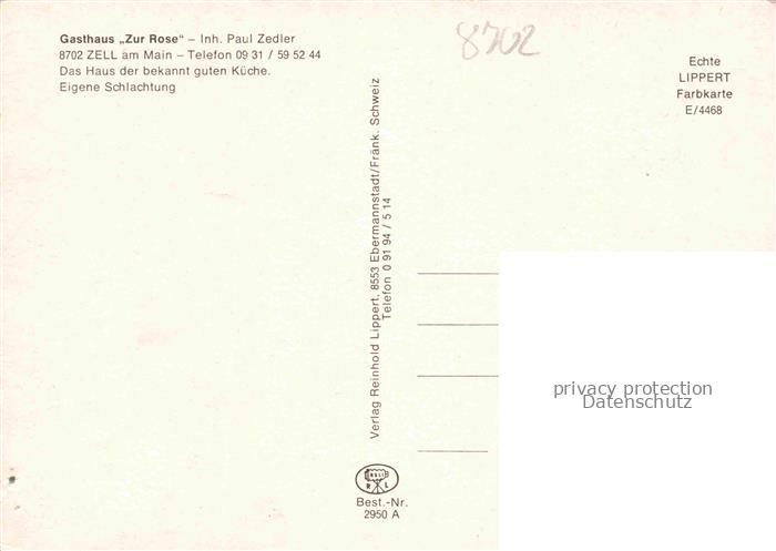 74054927 Zell Main Gasthau zur Rose Gastraeume Mainpartie postalisch nicht gelaufen Erhaltung siehe scans [WerneD78] KatCode: 11110009679209