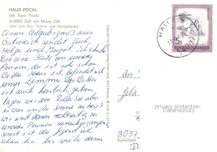 73320012 alte Postkarte Zell Moos Gaestehaus Pension Haus Poeckl Gastraum Terrasse postalisch gelaufen Erhaltung siehe scans [FriedD77] KatCode: 11390122031409