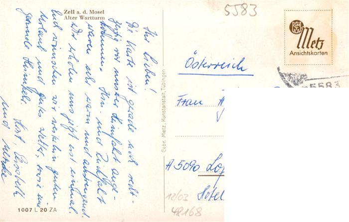 73900755 alte Postkarte Zell Mosel Alter Wartturm postalisch gelaufen Erhaltung siehe scans [WerneD78] KatCode: 11110007135092