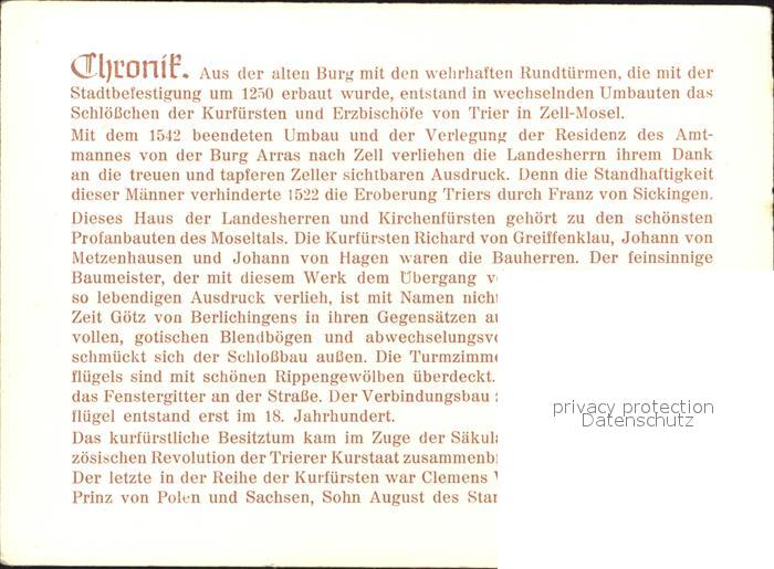 72282985 Zell Mosel Altes kurfuerstliches Schloss postalisch nicht gelaufen Werbemarke (keine Postkarte) Erhaltung siehe scans KatCode: 11110007135092