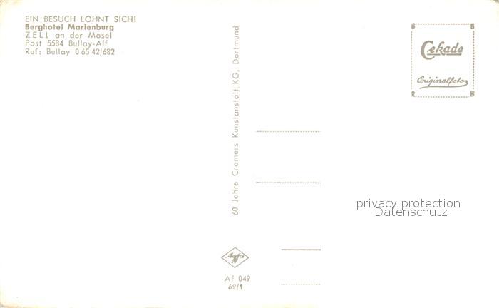 73331155 Zell Mosel Berghotel Marienburg postalisch nicht gelaufen Erhaltung siehe scans [WerneD78] KatCode: 11110007135092