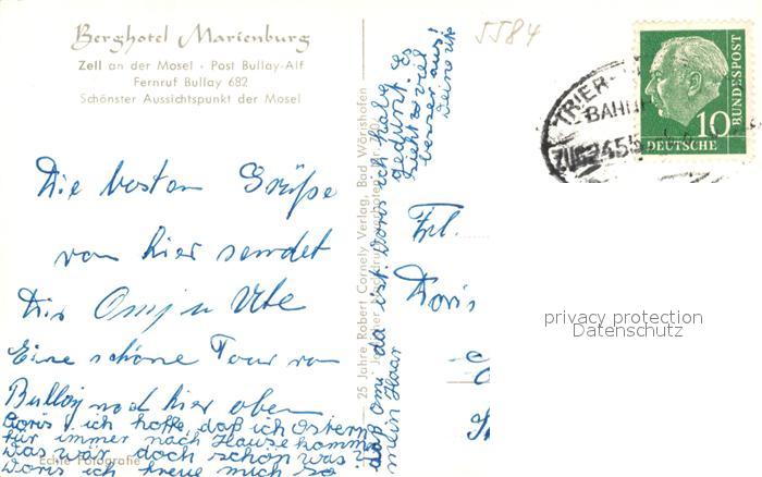 73560359 alte Postkarte Zell Mosel Berghotel Marienburg postalisch gelaufen Bahnpost Erhaltung siehe scans [KathaD81] KatCode: 11110007135092