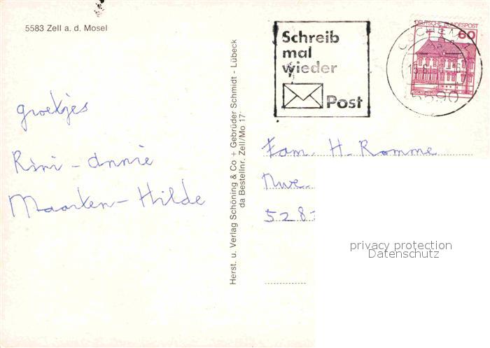 72843887 alte Postkarte Zell Mosel Burg Schwan Gasthaus Gruener Kranz postalisch gelaufen Erhaltung siehe scans [NatalD47] KatCode: 11110007135092
