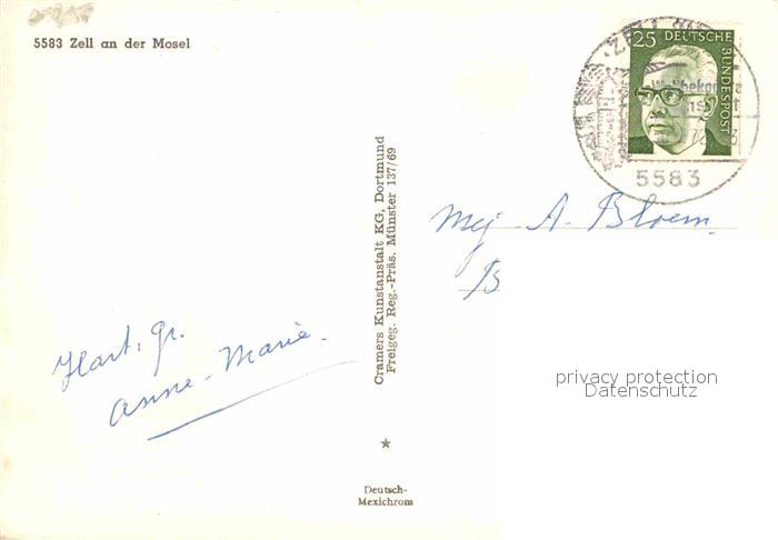 72861910 alte Postkarte Zell Mosel Fliegeraufnahme postalisch gelaufen Erhaltung siehe scans [WerneD78] KatCode: 11110007135092