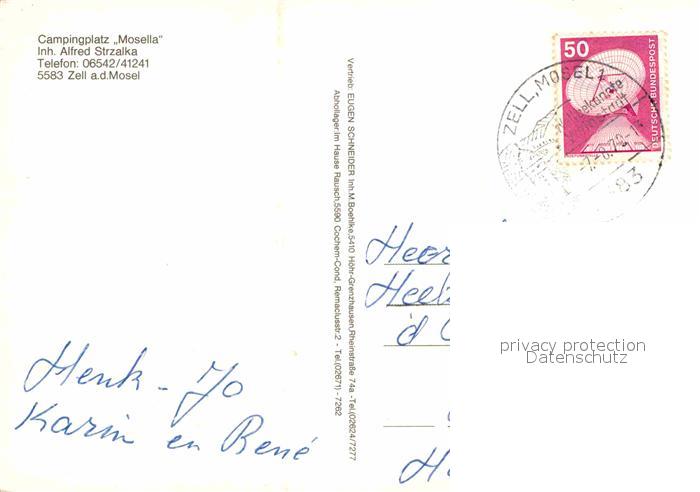 72655700 alte Postkarte Zell Mosel Fliegeraufnahme Camping Mosella Moselpartie postalisch gelaufen Erhaltung siehe scans [LiesaD40] KatCode: 11110007135092