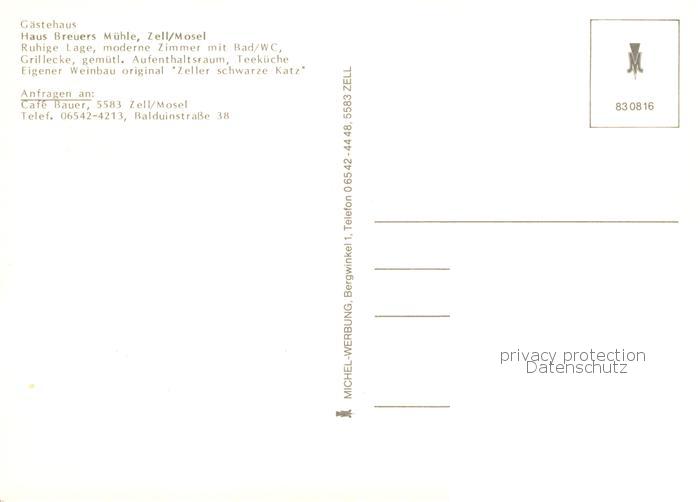 73843944 Zell Mosel Gaestehaus Breuers Muehle Terrasse Gaststube postalisch nicht gelaufen Erhaltung siehe scans [WerneD78] KatCode: 11110007135092