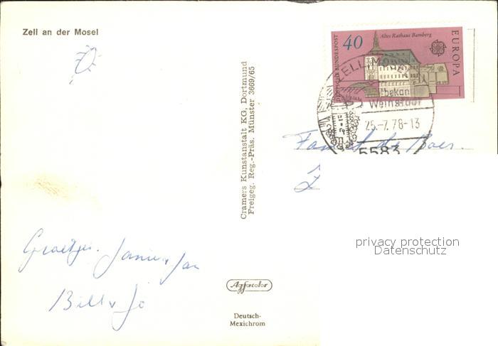 72452097 alte Postkarte Zell Mosel Gesamtansicht postalisch gelaufen Erhaltung siehe scans KatCode: 11110007135092