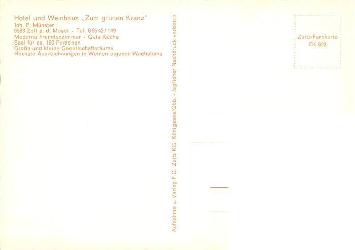 73908641 Zell Mosel Hotel Weinhaus Zum gruenen Kranz postalisch nicht gelaufen Erhaltung siehe scans [WerneD78] KatCode: 11110007135092