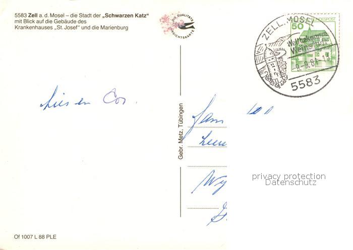 72932422 alte Postkarte Zell Mosel Moselpartie Krankenhaus St Josef und Marienburg postalisch gelaufen Erhaltung siehe scans [WerneD78] KatCode: 11110007135092