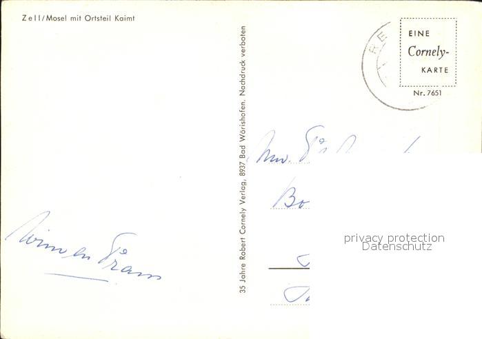 72603708 alte Postkarte Zell Mosel Panorama mit Ortsteil Kaimt postalisch gelaufen Erhaltung siehe scans [FriedD77] KatCode: 11110007135092