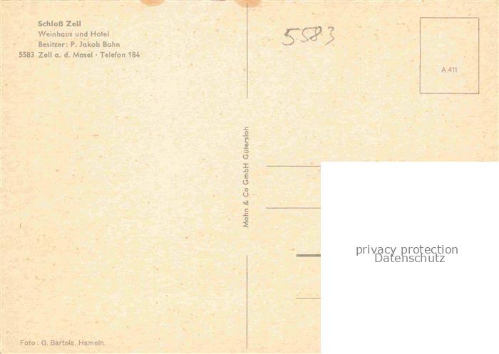 74042643 Zell Mosel Rheinland-Pfalz Schloss Zell Weinhaus Hotel Restaurant postalisch nicht gelaufen Erhaltung siehe scans [FriedD77] KatCode: 11110007135092