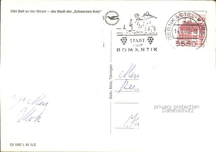 72269388 alte Postkarte Zell Mosel Stadt der Schwarzen Katz postalisch gelaufen Erhaltung siehe scans KatCode: 11110007135092