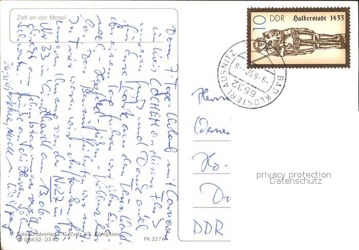 72368880 alte Postkarte Zell Mosel Teilansicht postalisch gelaufen Erhaltung siehe scans KatCode: 11110007135092