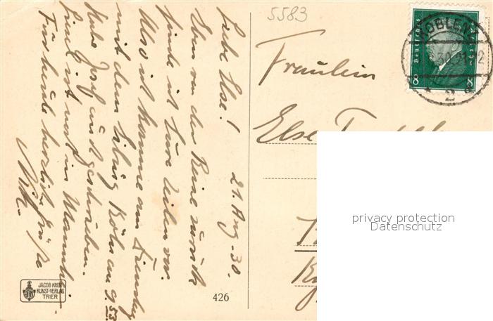 73559470 alte Postkarte Zell Mosel Uferpartie an der Mosel Faehre Weinberge postalisch gelaufen Erhaltung siehe scans [FriedD77] KatCode: 11110007135092