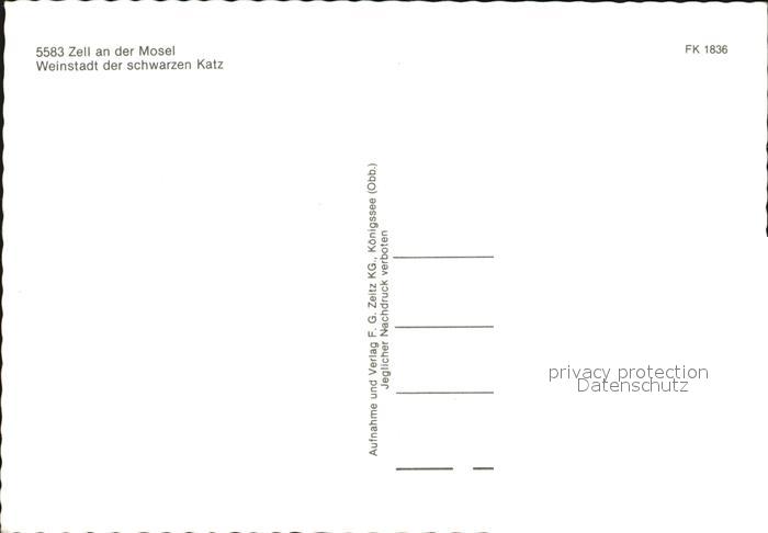 Zell Mosel Weinstadt der schwarzen Katz postalisch nicht gelaufen Erhaltung siehe scans