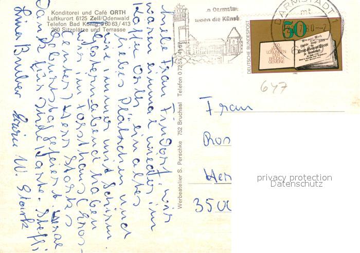 73569983 alte Postkarte Zell Odenwald Cafe Orth Terrasse postalisch gelaufen Erhaltung siehe scans [WerneD78] KatCode: 11110006437001