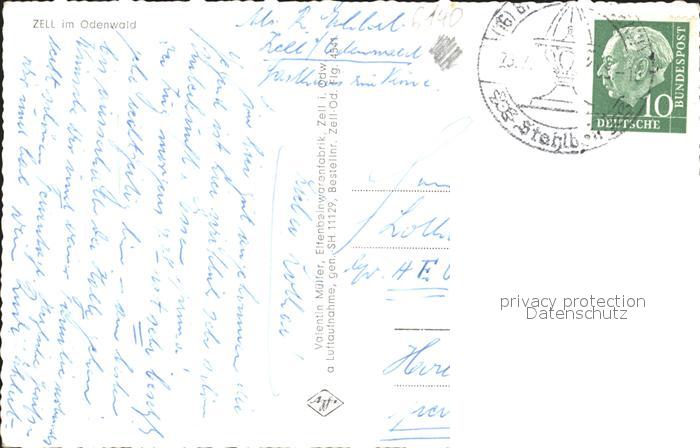 72100982 alte Postkarte Zell Odenwald Fliegeraufnahme postalisch gelaufen Erhaltung siehe scans KatCode: 11110006437001