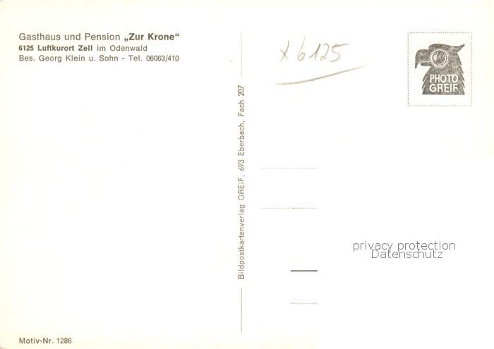 73844699 Zell Odenwald Gasthaus Pension Zur Krone postalisch nicht gelaufen Erhaltung siehe scans [WerneD78] KatCode: 11110006437001