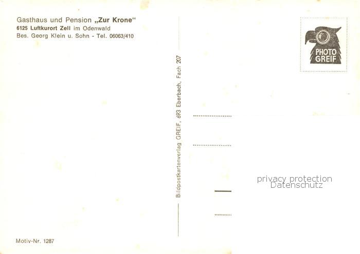 73856764 Zell Odenwald Gasthaus Zur Krone Pension postalisch nicht gelaufen Erhaltung siehe scans [WerneD78] KatCode: 11110006437001