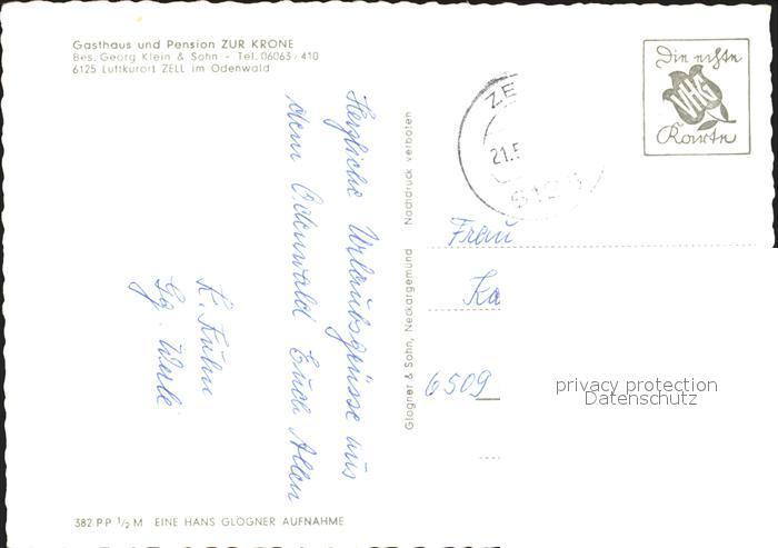 72104779 alte Postkarte Zell Odenwald Ortsansicht postalisch gelaufen Erhaltung siehe scans KatCode: 11110006437001